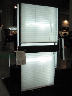 ブラインドは遮光するためのものだが、適度に光を取り入れたい場合もある。そんなニーズに応えて『ニチベイ』が開発したのが、スラットにポリカーボネートを採用した「グラスフェイススラットブラインド」。外からの視線を遮りながら、外光を適度に透過させる効果があり、室内環境の向上と省エネを同時に実現する「パッシブ採光型ブラインド」だ。今回はこの1月にリリースされ、より自然な透過性を発揮するスラットを装備した製品を展示している。このほか、実証実験で得られたブラインドの省エネ効果などをシミュレーションし、その結果をパネルや映像でわかりやすく展示。ブラインドメーカーとしての社会的責任も強くアピールしている。