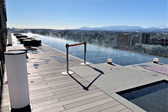 11. 「SORANO HOTEL」の屋上にある、都内屈指の約60mの長さを持つ「インフィニティプール」(温泉水)。晴れた日には富士山を望み、広い空の下で優雅に「ウェルビーイング」