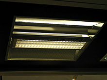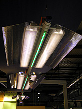ところで、ライティング・フェア2007にも海外からの出展社が多数ありました。その中で留意したブースに、ダウンスポットにおいて世界有数のメーカーであるイタリアReggiani Spa Illuminazione社がありました。新作のダウンスポットPRと日本での販路開拓が出展目的との事でした。その新作ダウンスポットは次の項のEuroluceで紹介します。欧米の照明展でも見かけるアルミ部材メーカーのドイツAlanod Aluminium-Veredlung社がT5直管ランプ用アルミ部材(ルーバーや反射板)を展示していました。日本でも高反射率のアルミを用いた高効率照明器具が普及することでありましょう。