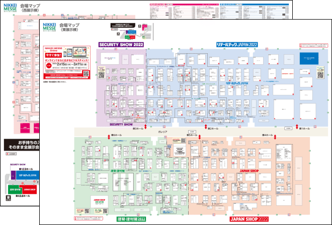 会場図面と出展者一覧を掲載した会場マップです。会場ではご来場いただいた方にお配りします。